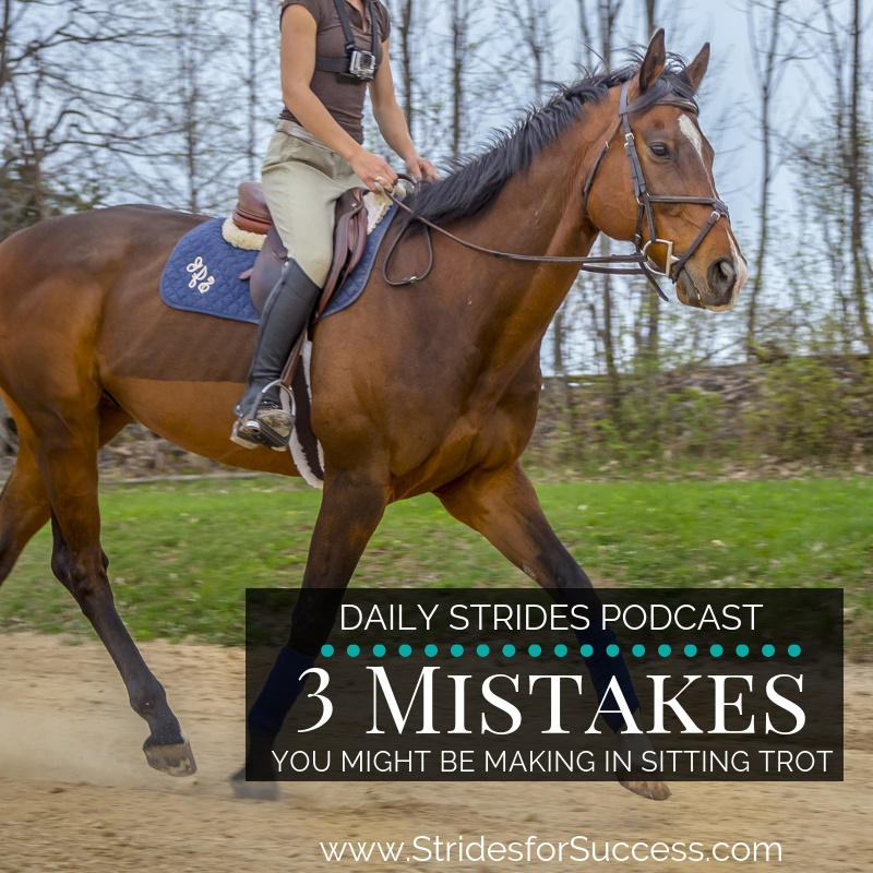 In this episode of the Daily Strides Podcast I want to tell you what not to do in the sitting trot. I hope that by hearing at least one of these things, you can have an ‘aha’ moment. Knowing what you are doing wrong is one of the easiest ways to begin swapping out those habits for ones that better serve you.