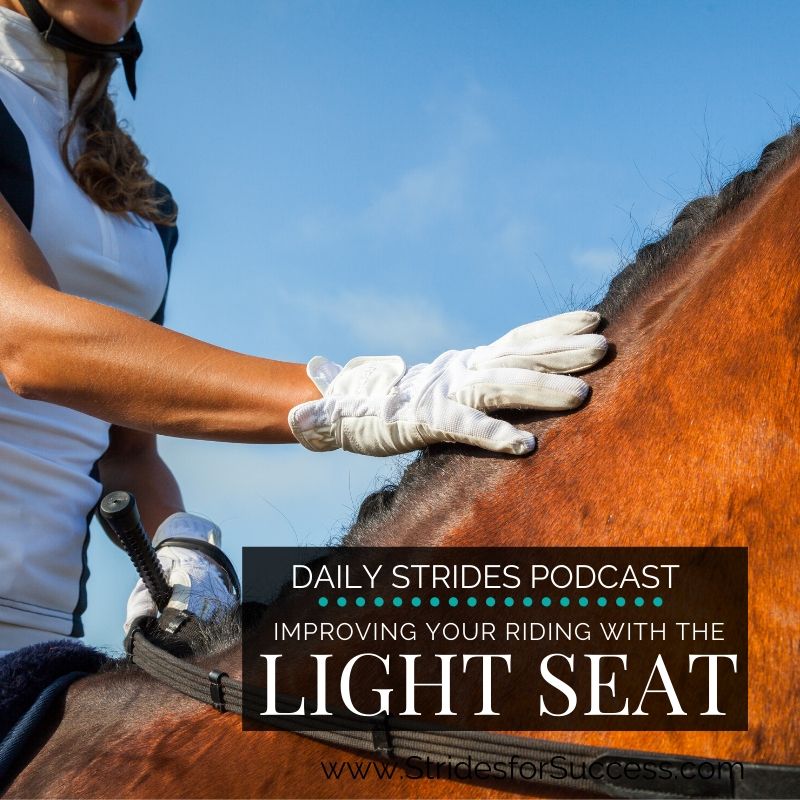 Practice moving in and out of your light seat while maintaining the contact and gently redistributing your weight.